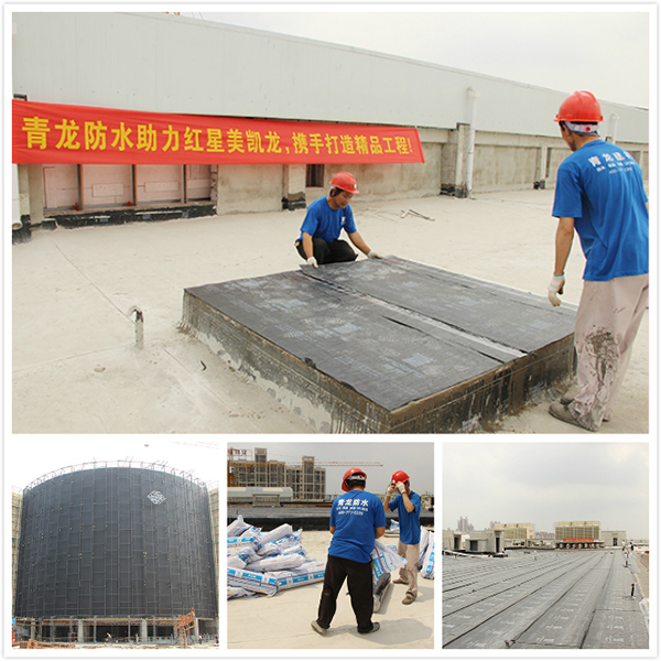 青龍公司項(xiàng)目經(jīng)理宋先生憑借優(yōu)秀的防水材料品質(zhì)和正確的投標(biāo)策略,從多家防水公司中脫穎而出,成功中標(biāo)這一知名防水項(xiàng)目,承接了紅星美凱龍?jiān)摷揖淤徫镏行牡牡叵率业装?、地下室頂板、?cè)墻防水施工、屋面防水施工及屋面油膏嵌縫等防水工程。根據(jù)設(shè)計(jì)要求和不同防水部位,在青龍防水專家徐工的指導(dǎo)下,制定了科學(xué)而嚴(yán)謹(jǐn)?shù)姆浪桨?,分別采用了911聚氨酯防水涂料(CQ107)、單組份濕固化聚氨酯防水涂料(CQ104)、JS 復(fù)合防水涂料(CQ105)和反應(yīng)粘防水卷材。青龍防水材料品質(zhì)過硬,防水性能顯著,在宋先生嚴(yán)格的施工下,得到了甲方和監(jiān)理的肯定。由于施工簡便,對工人操作技術(shù)要求不高,防水施工進(jìn)展非常順利,目前防水工程已處于收尾階段。