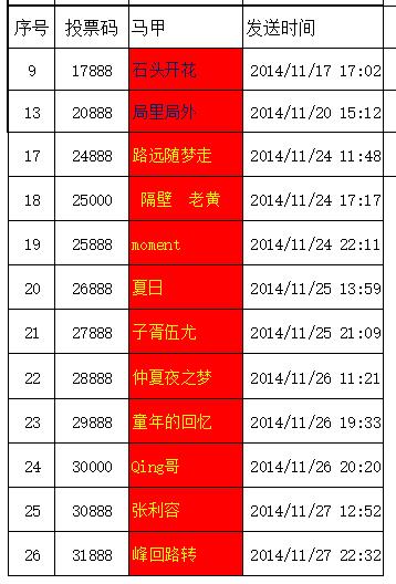 第二批投中并中獎名單公布如下(包括上期未及時提交信息):石頭開花、局里局外、路遠隨夢走、隔壁 老黃、moment、夏日、子胥伍尤、仲夏夜之夢、童年的回憶、Qing哥、張利容、峰回路轉(zhuǎn)。恭喜他們,也請大家繼續(xù)支持青龍,只為青龍投票!