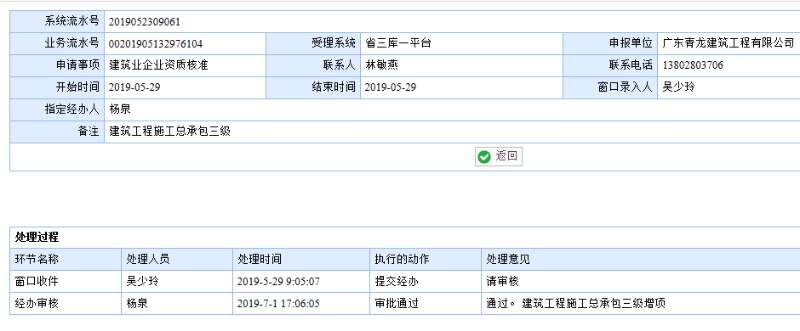 ▲青龍獲得建筑工程施工總承包三級資質(zhì)