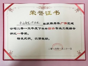 青龍防水材料質(zhì)量可靠,鄺洪根團(tuán)隊(duì)榮獲雅居樂(lè)防水工程綜合評(píng)比一等獎(jiǎng)