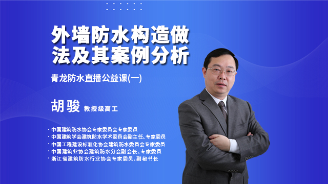 胡駿教授是資深的防水行業(yè)知名專家,他不僅擁有扎實(shí)的專業(yè)能力,并且都親身參與過(guò)多起國(guó)內(nèi)重點(diǎn)防水工程,實(shí)戰(zhàn)能力過(guò)硬。今晚他將為大家?guī)?lái)"外墻防水構(gòu)造做法及其案例分析"的課題,從外墻構(gòu)造形式、外墻防水構(gòu)造做法等最基本的防水知識(shí)入手,幫助大家詳細(xì)了解外墻防水原理、使用材料和施工細(xì)節(jié),最后以具體的案例分析介紹其中的成功得失,幫助我們?cè)谝院蟮姆浪a(bǔ)漏工程中規(guī)避那些不規(guī)范的做法。