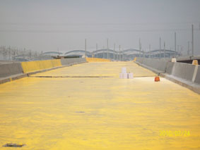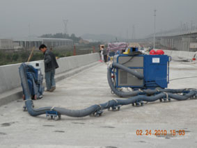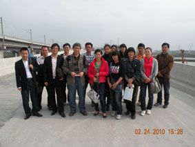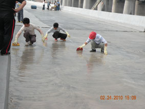 2010年2月24日,公司領導和業(yè)務員一起到廣珠輕軌工地現(xiàn)場參觀實習。 工人用專業(yè)設備處理基面 打底漆