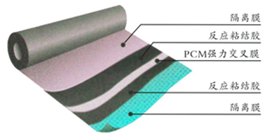 青龍PCM反應(yīng)粘結(jié)型防水卷材是廣西青龍化學(xué)建材有限公司為了解決潮濕基面及地下防水工程滲漏水問(wèn)題而專門研發(fā)的產(chǎn)品,它集中采用了反應(yīng)粘技術(shù)和強(qiáng)力交叉膜技術(shù)。其中,反應(yīng)粘技術(shù)通過(guò)在自粘膠膜體系中植入親水基,使PCM反應(yīng)粘結(jié)型防水卷材在壓力的作用下,親水“粒子”與聚合物水泥漿反應(yīng)產(chǎn)生“凝膠”,同時(shí)聚合物水泥漿在水泥水化過(guò)程中產(chǎn)生水化熱增強(qiáng)自粘膠的蠕變功能,并形成毛細(xì)管孔與水泥漿相互作用而發(fā)生一系列物理化學(xué)反應(yīng),從而與基層緊密粘結(jié),好比給混凝土移植一層皮膚。而強(qiáng)力交叉膜由45°斜向切割的單層薄膜交叉疊壓在一起,復(fù)合成多層膜,具有耐穿刺、耐撕裂、耐化學(xué)腐蝕、抗沖擊、耐低溫、抗紫外線等優(yōu)點(diǎn),產(chǎn)品的整體性能更好。