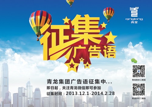 現(xiàn)為了使各地代理商、消費(fèi)者及社會(huì)公眾更加容易理解青龍集團(tuán)的環(huán)保節(jié)能、社會(huì)責(zé)任、誠(chéng)實(shí)守信等文化涵義,建立青龍集團(tuán)全新品牌形象,現(xiàn)向社會(huì)各界征集集團(tuán)廣告語(yǔ)。歡迎社會(huì)各界踴躍參與。