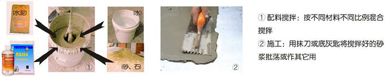3、配制混凝土或砂漿時(shí),將砂、石、水泥及水在攪拌機(jī)中先直接攪拌,再加 對(duì)應(yīng)比例的防水劑繼續(xù)攪拌均勻即可;