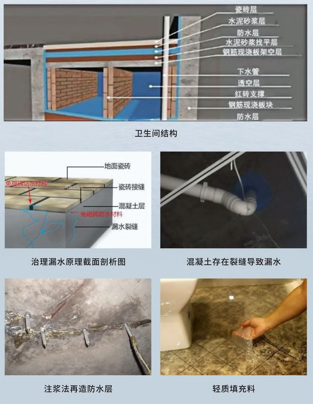 ⑥如條件容許,漏水區(qū)域停止使用3-5天后再施工效果更佳。