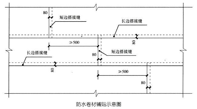 | 原因分析 | 1、防水卷材鋪貼時(shí)未彈線,鋪貼不順直,搭接寬度不夠。 2、未嚴(yán)格按施工工藝進(jìn)行施工,卷材搭接部位未粘貼牢固,膠粘、自粘卷材搭接縫受污染、未壓實(shí)粘牢,熱熔卷材未充分熔融溢出瀝青條封口 |
