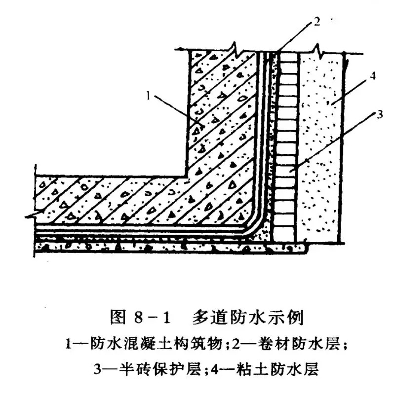 (1) 建筑地下防水一般為砼結(jié)構(gòu)自防水加卷材防水層。地下工程滲漏水的原因主要涉及到材料、設計、施工等多方面因素,重點是施工質(zhì)量控制。