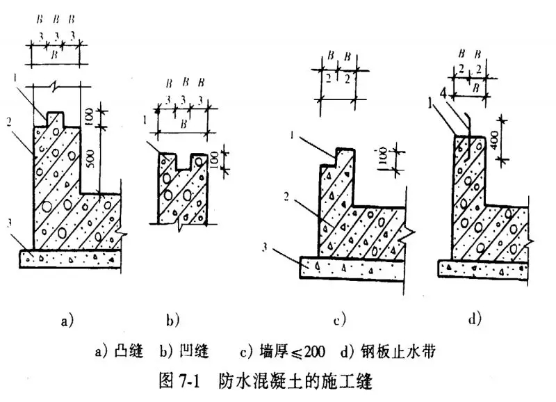 2、混凝土結(jié)構(gòu)的施工縫也是極易發(fā)生滲水的位。防止施工縫部位滲水可采取以下措施:首先施工縫應按規(guī)定位置留設,防水薄弱部位及底板上不應留設施工縫,墻板上如必須留設垂直施工縫時,應與變形縫相一致。其次施工縫的留設、清理及新舊混凝土的接漿等應有統(tǒng)一部署,由專人認真細致地做好。還有設計人員在確定鋼筋布置位置和墻體厚度時,應考慮方便施工,以保證工程質(zhì)量。如發(fā)現(xiàn)施工縫滲水,可采用防水堵漏技術進行修補。
